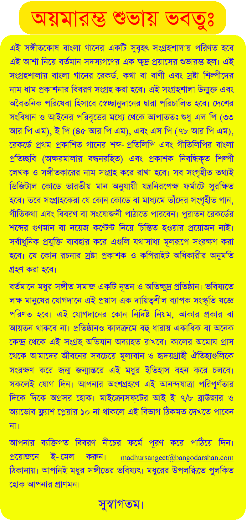 | H O M E | MADHUR SANGEET | SAHITYA RATNAKAR | ITIHAS | SHIKSHA | BANGLA BHASHA | S A M A J |